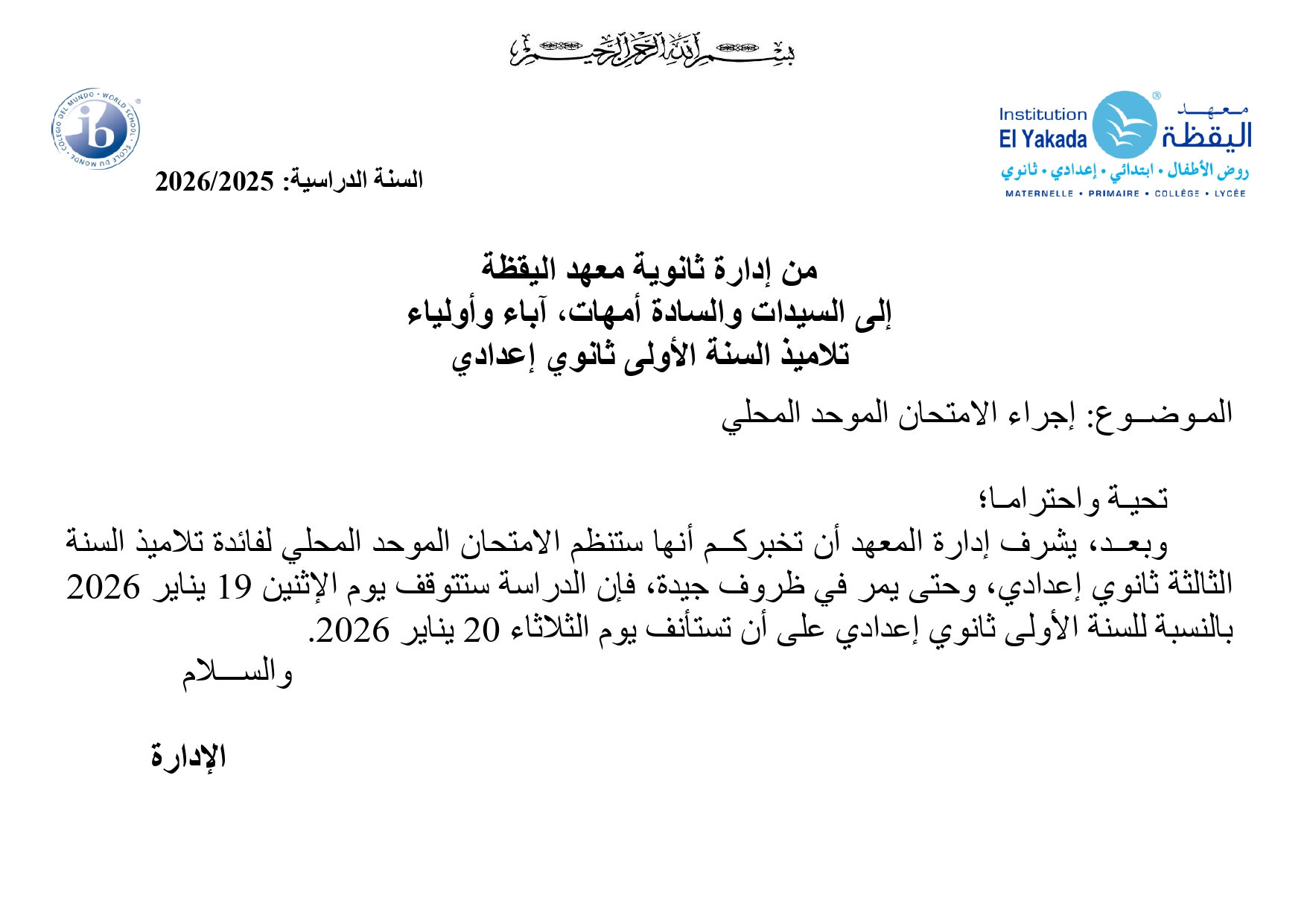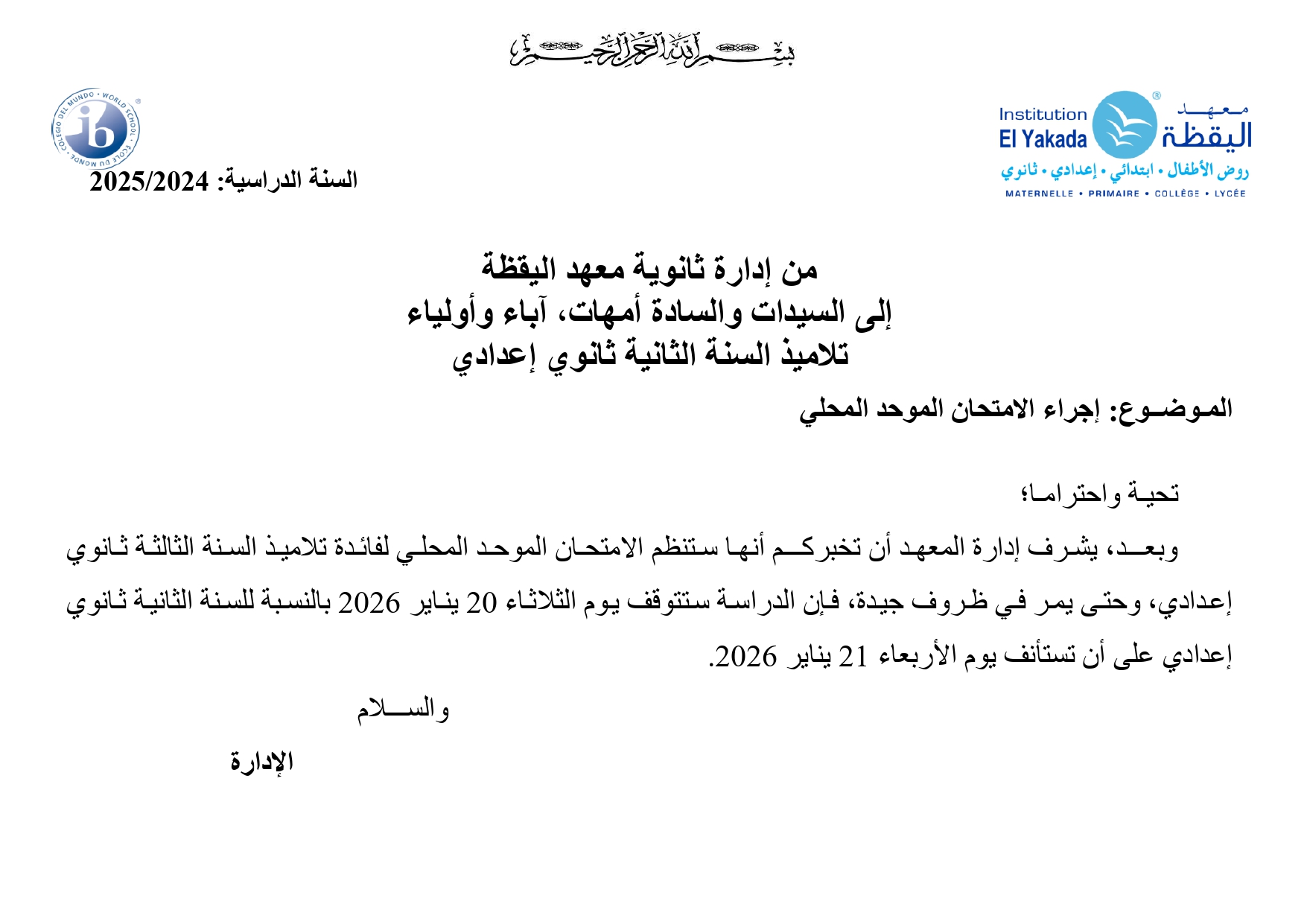 إجراء الامتحان الموحد المحلي – تلاميذ المستوى الرابع من التعليـم الابتدائـي – اليقظة 2 |