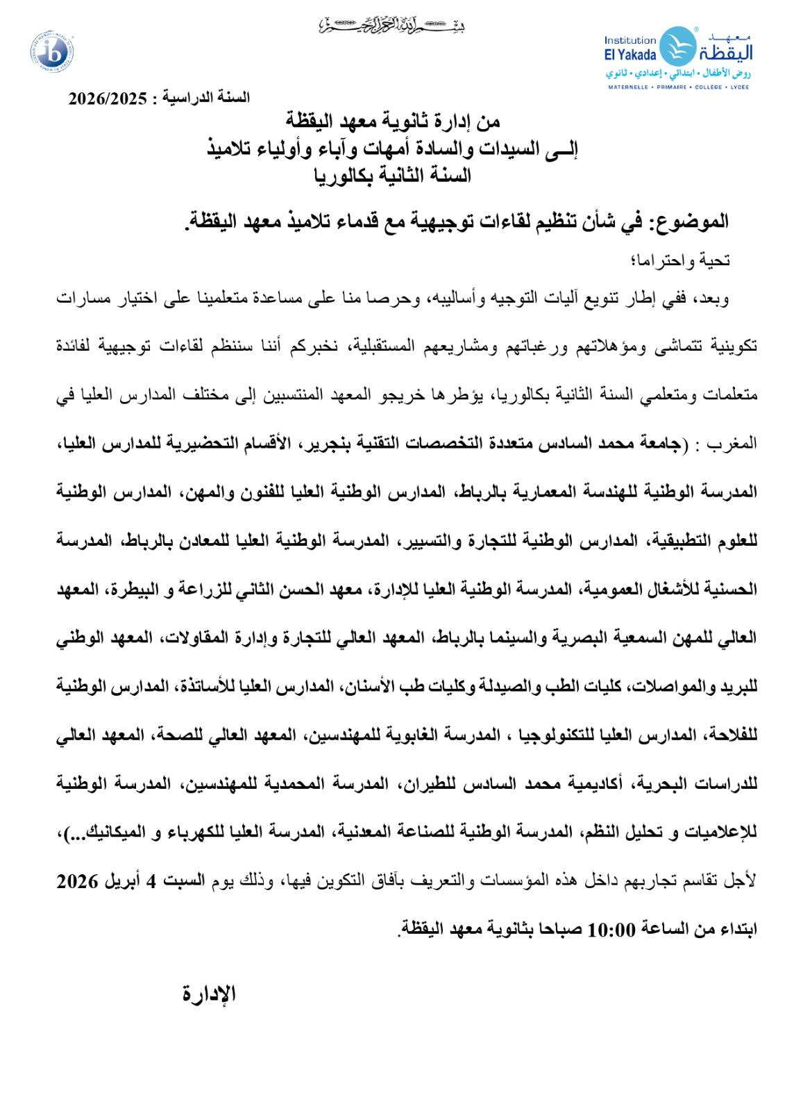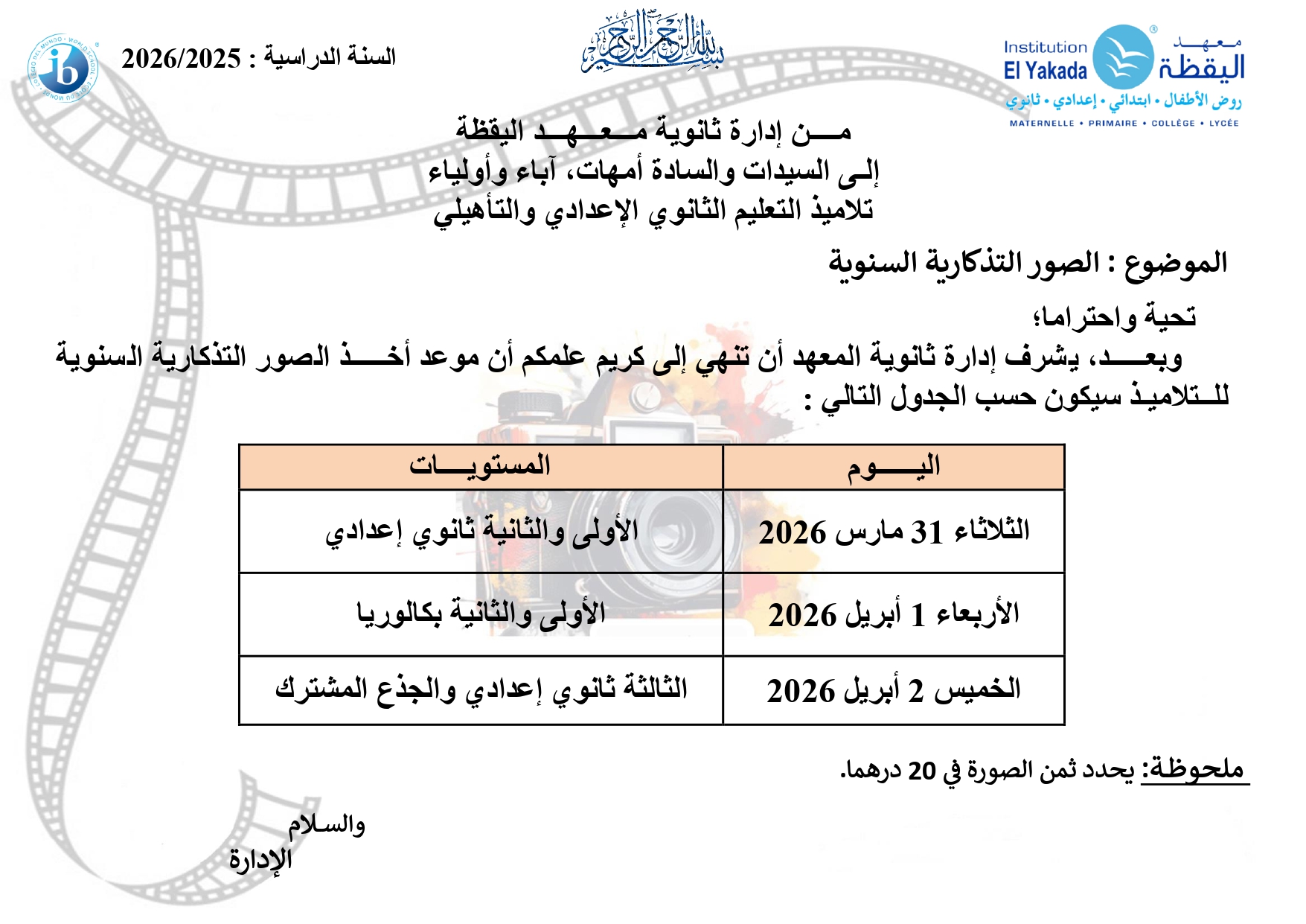 الدخول المدرسي 2026/2025 |