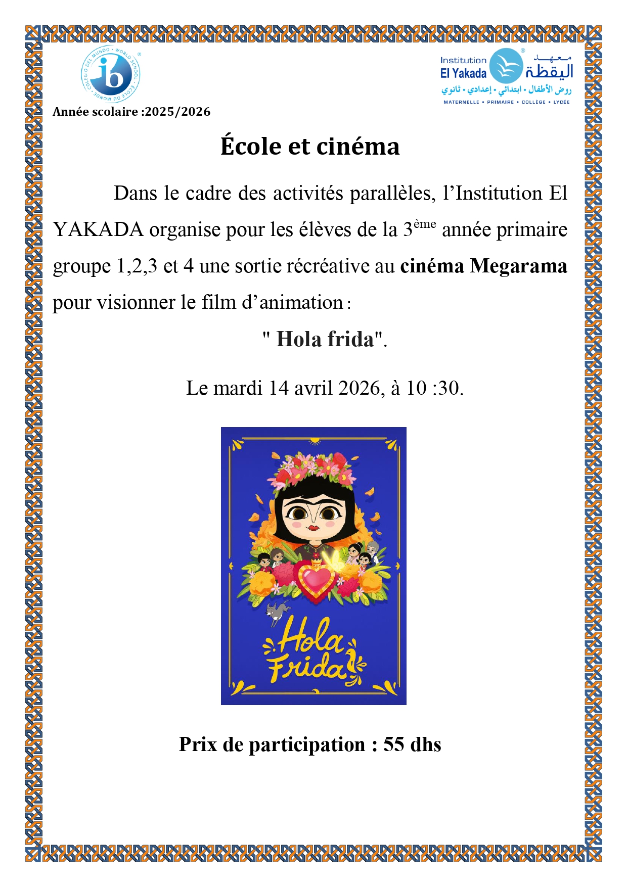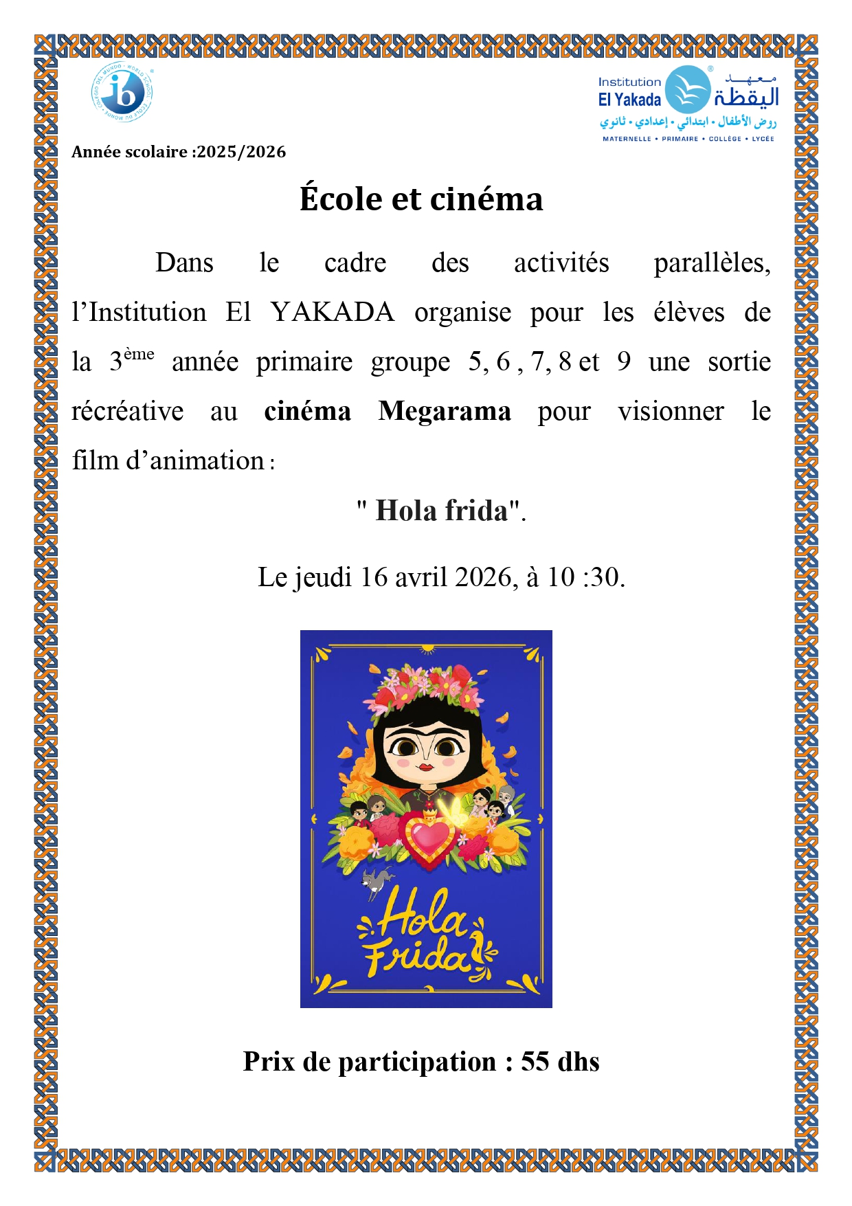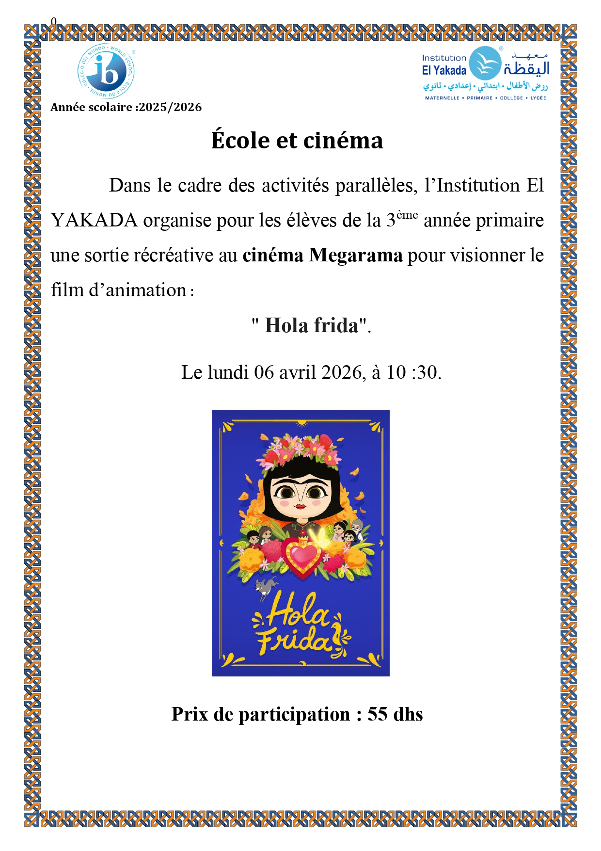 Séance cinéma – 2ème année primaire: 1, 2, 3 et 4 – El Yakada 2 |