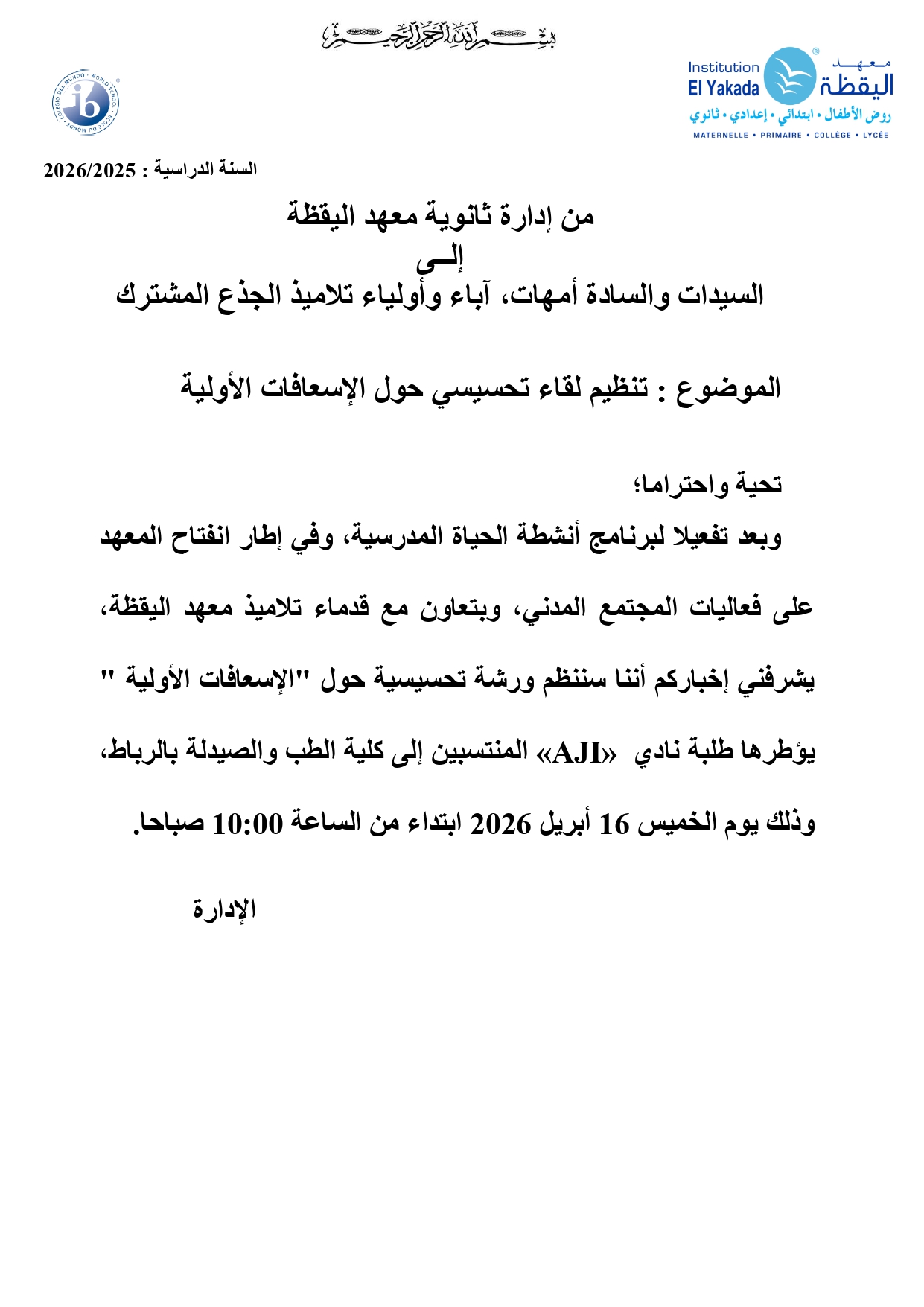 اللقاء التواصلي مع هيئة التدريس – تلاميذ المستوى الرابع من التعليـم الابتدائـي – اليقظة 1 |